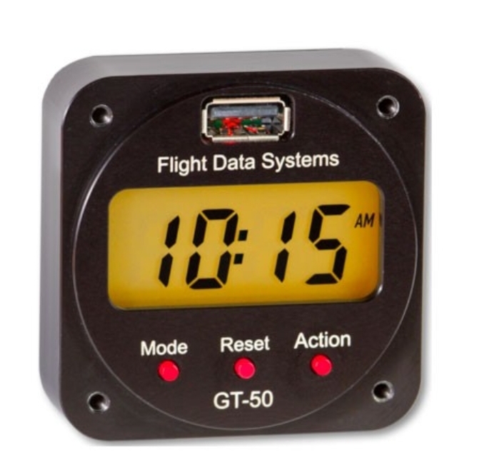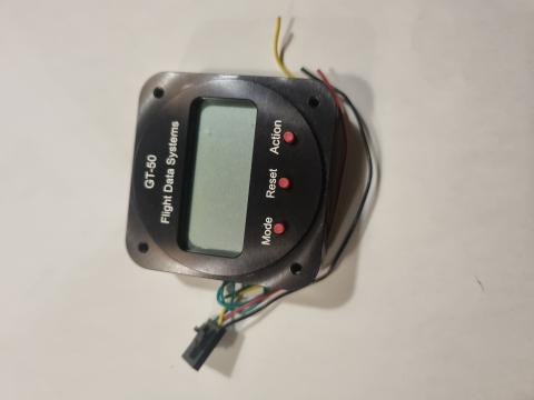 The GT-50 is a Clock, Timer, G-Meter, Voltmeter and Outside Air Temperature instrument enclosed in a milled aluminum case fitting in a standard 2-1/4” instrument hole.